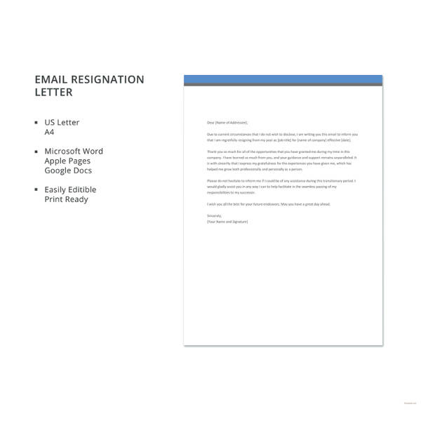 37+ Free Printable Resignation Mail Examples Download Pdf Doc Zip Pics